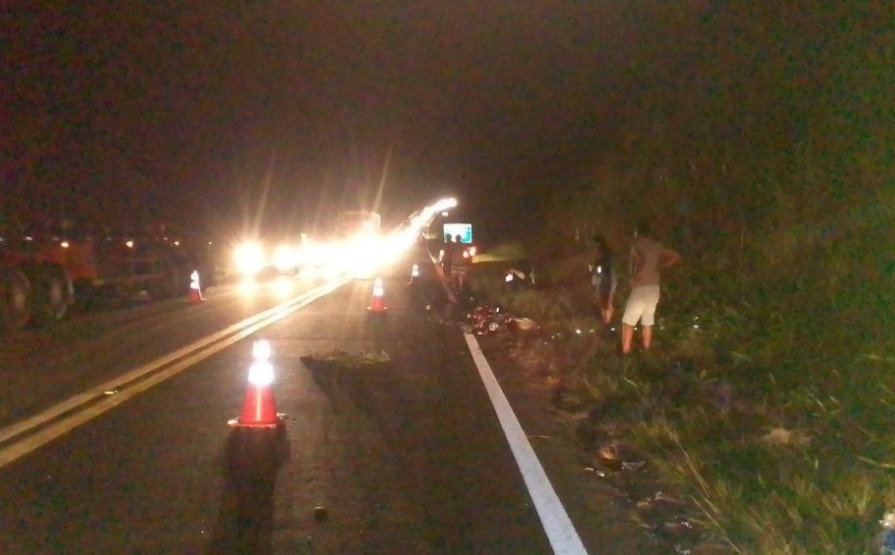 A motocicleta tombou sobre a pista de rolamento, arrastando-se por cerca de 30 metros até sua total imobilização no bordo da pista, no sentido decrescente. O piloto foi socorrido e seu estado de saúde é grave. (PRFES)