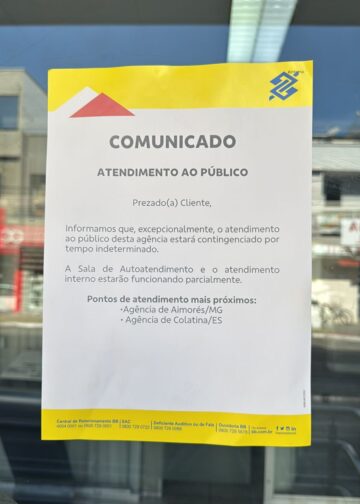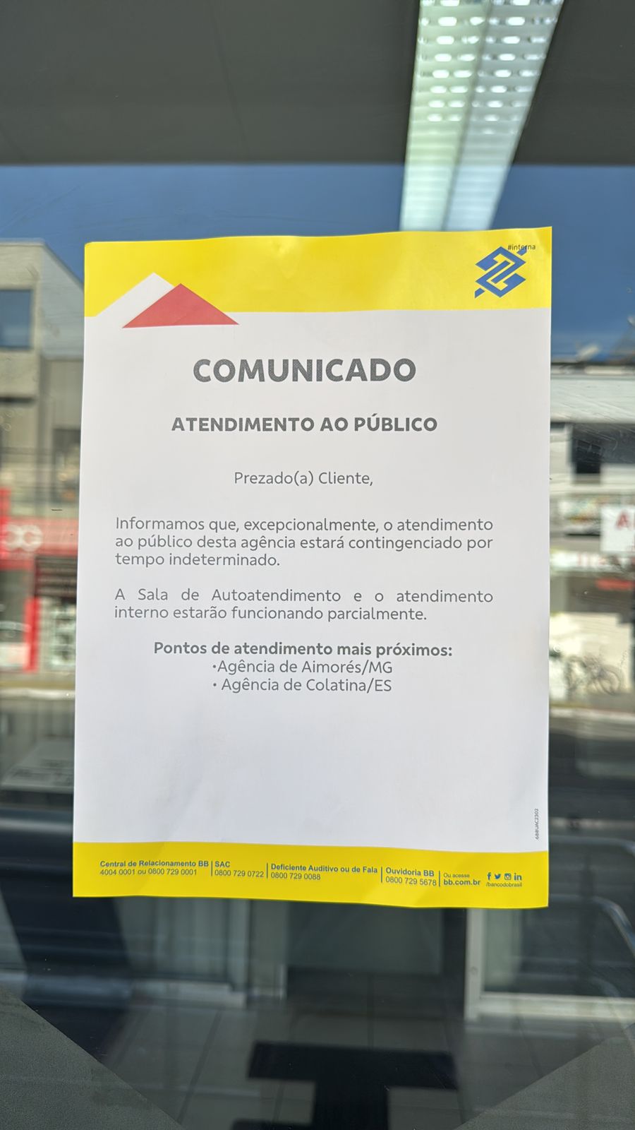 O cartaz na porta do Banco do Brasil comunica ainda, friamente, que os pontos de atendimento mais próximos são as agências de Aimorés ( MG) e Colatina.
