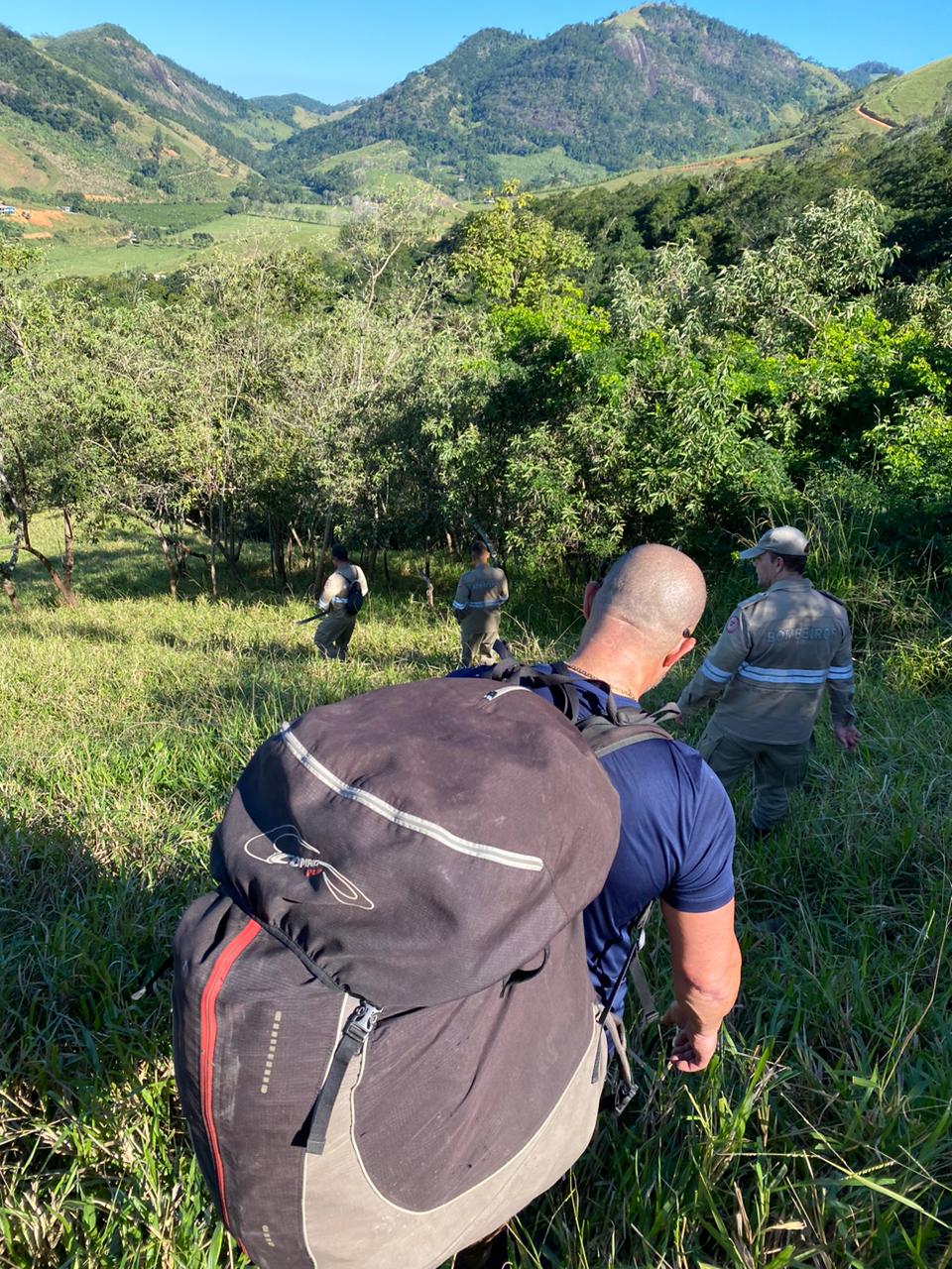 Uma equipe de seis bombeiros foi encaminhada para o local. Antes mesmo de iniciarem a busca, os militares foram informados pelo Centro Integrado Operacional de Defesa Social (Ciodes) que o parapentista tinha feito um novo contato, informando que ele havia conseguido sair da árvore, mas, ao caminhar pela mata, se deparou com um precipício e não conseguia encontrar o caminho para sair do local.
