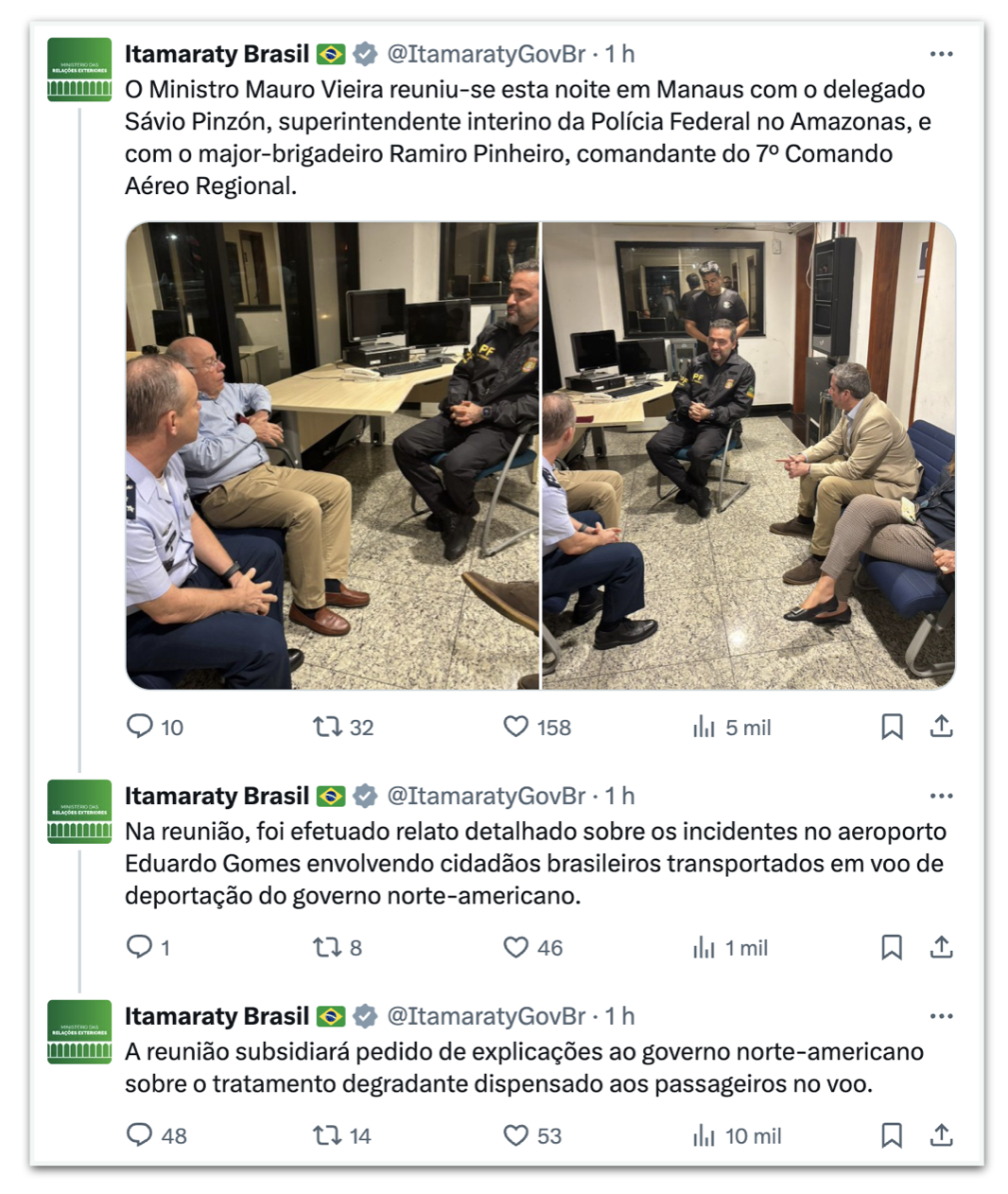 Como em Manaus foi uma aeronave da FAB que continuou o trajeto até Belo Horizonte, os deportados já estavam sob jurisdição brasileira e não seria mais necessário usar algemas nem seguir os procedimentos legais dos EUA. A rigor, a ordem do Ministério da Justiça apenas expressou algo que já aconteceria de qualquer forma.