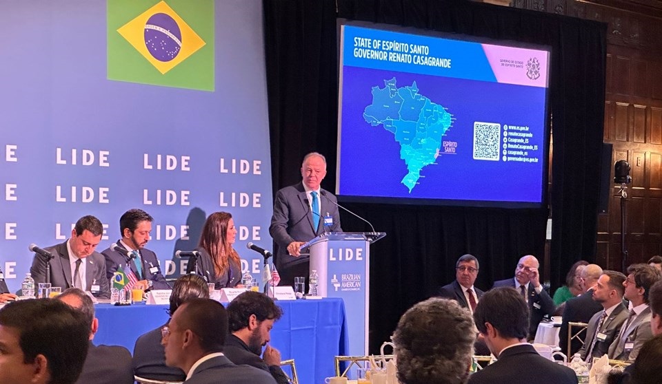 Durante sua apresentação, o mandatário capixaba apresentou as potencialidades do Espírito Santo, destacando a localização estratégica do Estado, além da diversidade de setores econômicos presentes na região, como o setor de petróleo e gás, mineração, além de uma gestão fiscal sólida que dá segurança aos empreendedores.