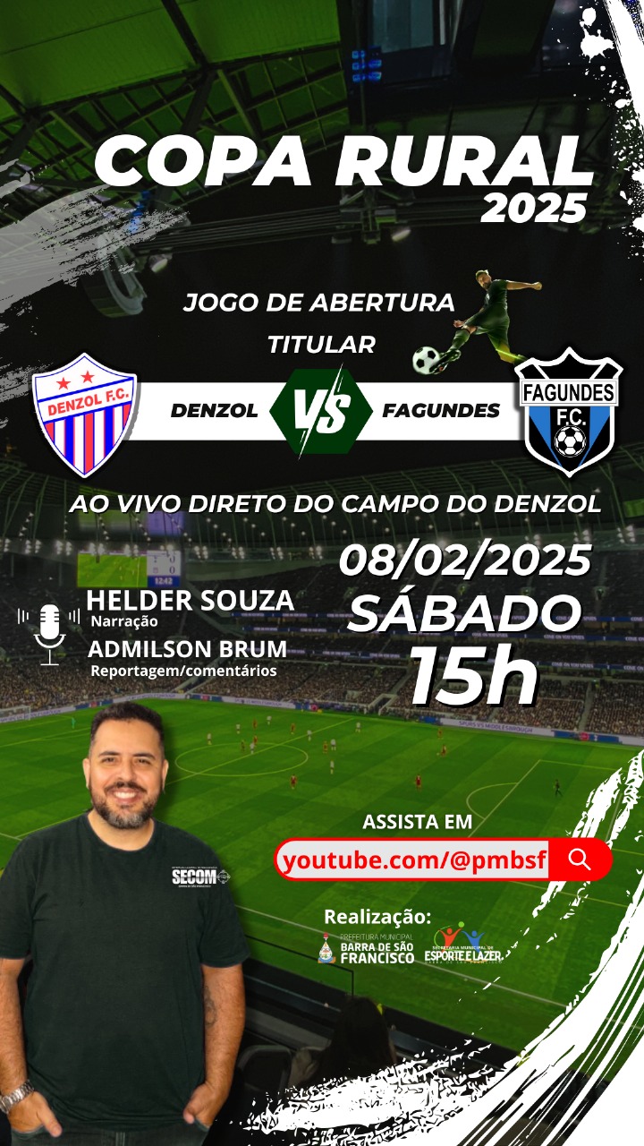 A primeira rodada da Copa Rural 2025, tradicional campeonato de futebol de campo de Barra de São Francisco, começará neste sábado (08) e domingo (09). No sábado, a competição abre com o jogo entre Denzol e Fagundes, em ambas as categorias, a partir das 13h, com transmissão ao vivo pelo YouTube, sob a narração de Helder Souza. Já no domingo, será a vez do confronto entre Santo Antônio e Fuzil, também nas duas categorias, no campo do Piraí, a partir das 13h.