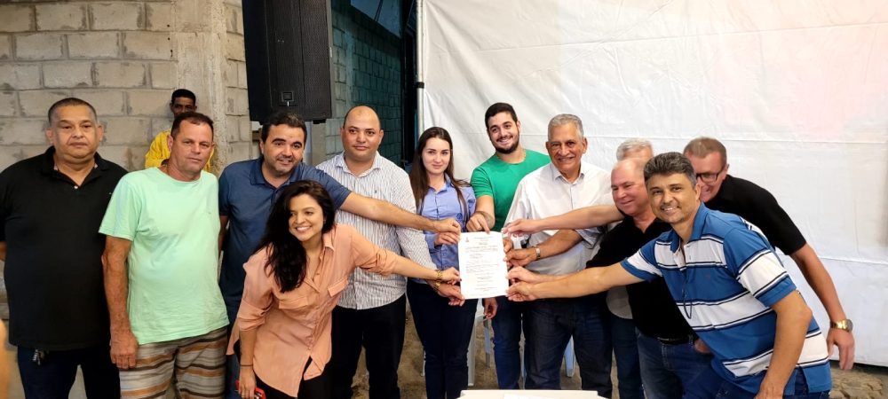 Prefeito e vereadores exibem a ordem de serviço para as obras no Campo Novo (Foto: Gilberto Gil)