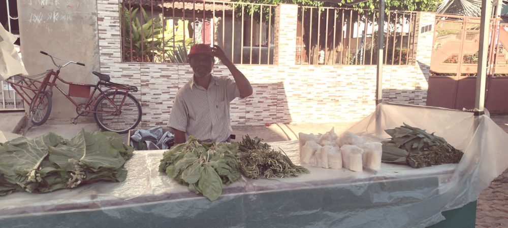 Zé das Cunhas, na sua tenda na feira livre de Barra e São Francisco (Foto: Weber Andrade)
