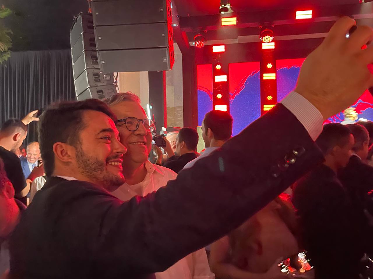 O governador de Goiás, Ronaldo Caiado (União Brasil), que tenta emplacar o apoio da sua legenda na sua candidatura à Presidência, compareceu à festa de Pereira. Rueda e Caiado trocaram abraços e compartilharam a mesma foto.