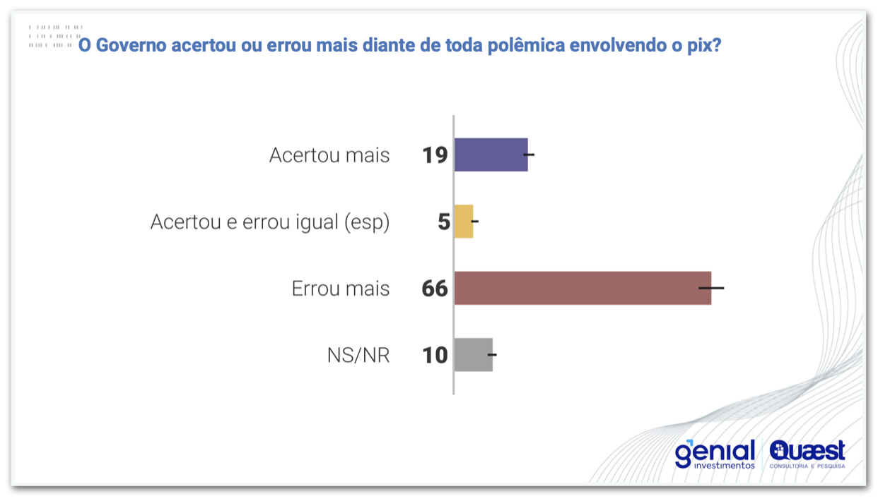 Para 66% dos entrevistados, o governo errou mais do que acertou diante das discussões que resultaram no recuo do governo sobre as medidas de regulação previstas para o Pix.