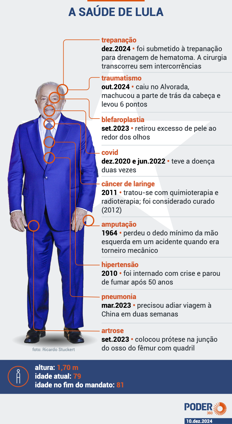 • 10.dez.2024 – Lula é operado às pressas após sentir dor de cabeça