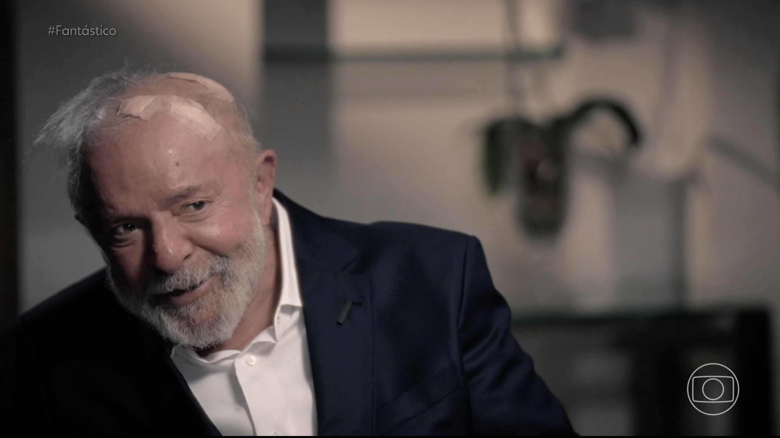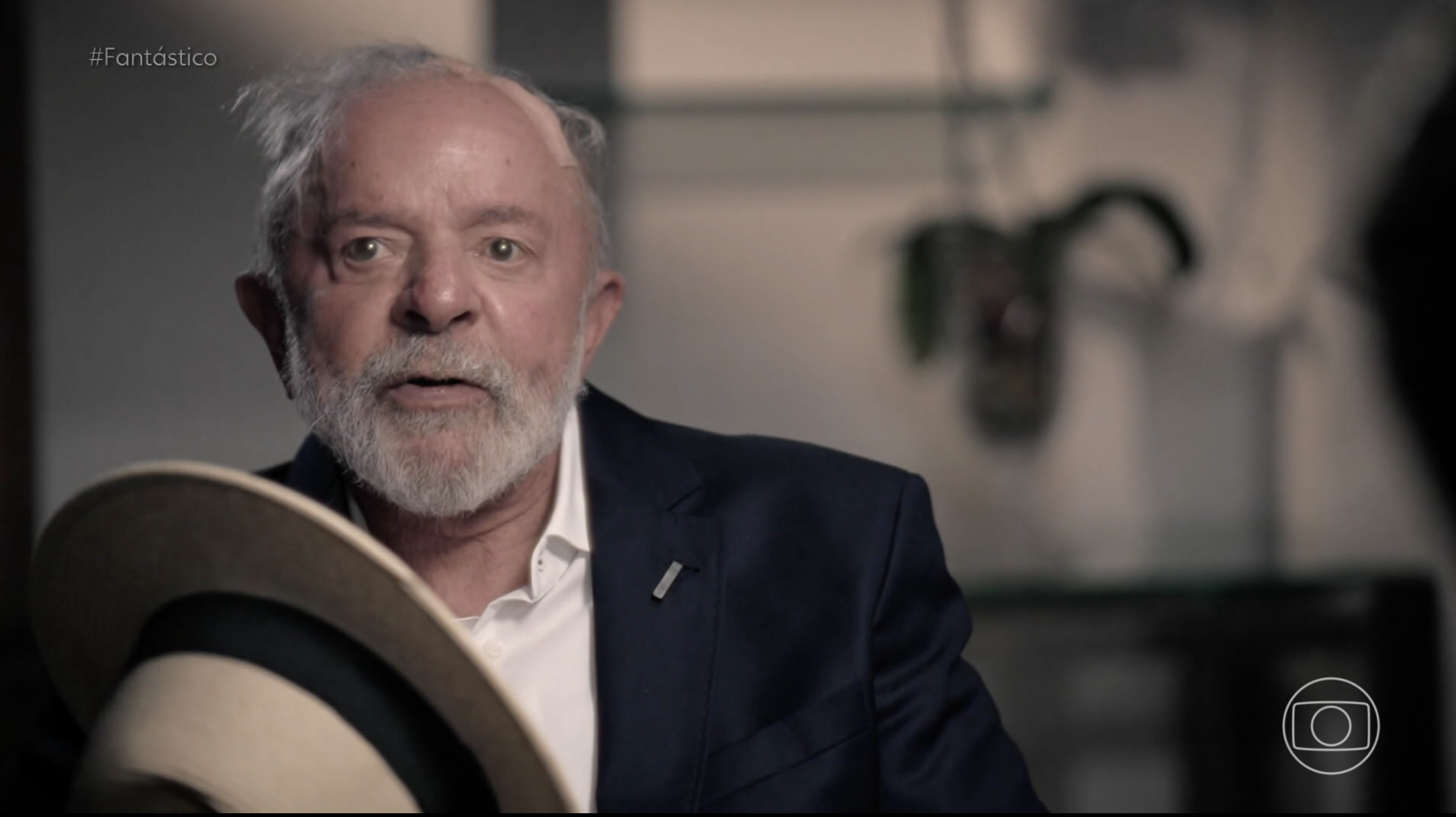 Lula deu a entrevista de chapéu, o mesmo que usou em entrevista a jornalistas pela manhã. No pronunciamento que fez ao receber alta, o chefe do Executivo explicou o motivo de usar o acessório: “Eu não quero que vocês vejam [os curativos] porque eu sou um cara teoricamente bonito, mas, na prática, minha cabeça está me deixando um pouco feio”.
