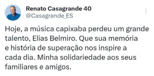 Mas neste sábado (27), a capital capixaba amanheceu mais triste: Elias Belmiro perdeu a guerra. O músico, conhecido por sua habilidade e paixão pela música, morreu aos 56 anos em decorrência de um infarto. O corpo do músico foi encontrado por volta das 7h da manhã na Rua 7, no Centro de Vitória.