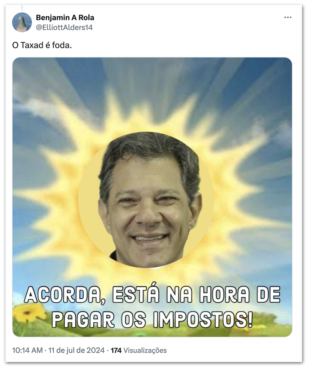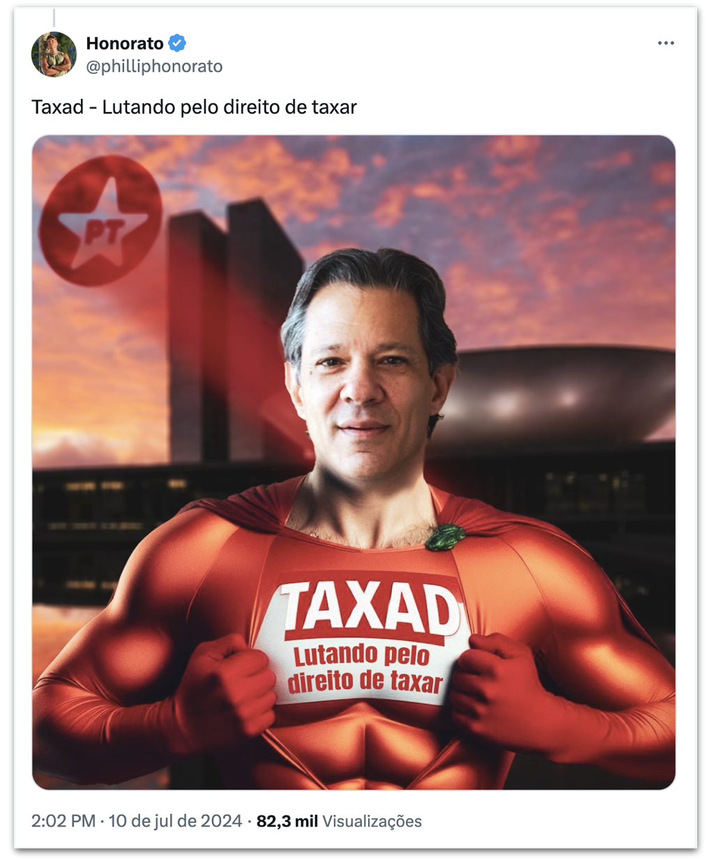 O secretário de Comunicação do PT, deputado Jilmar Tatto (SP), disse não se preocupar com os memes que ligam o ministro da Fazenda, Fernando Haddad, ao aumento de impostos. O ministro tem sido criticado pelas decisões econômicas do governo do presidente Luiz Inácio Lula da Silva (PT).