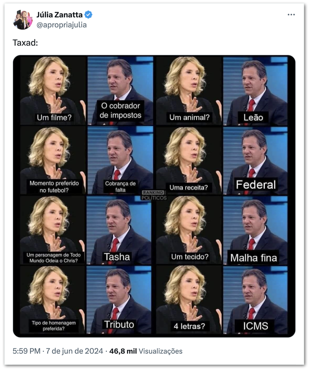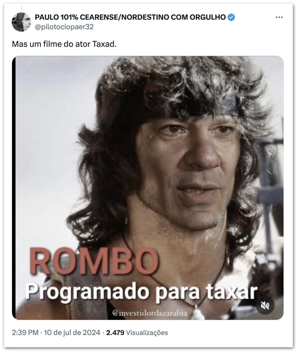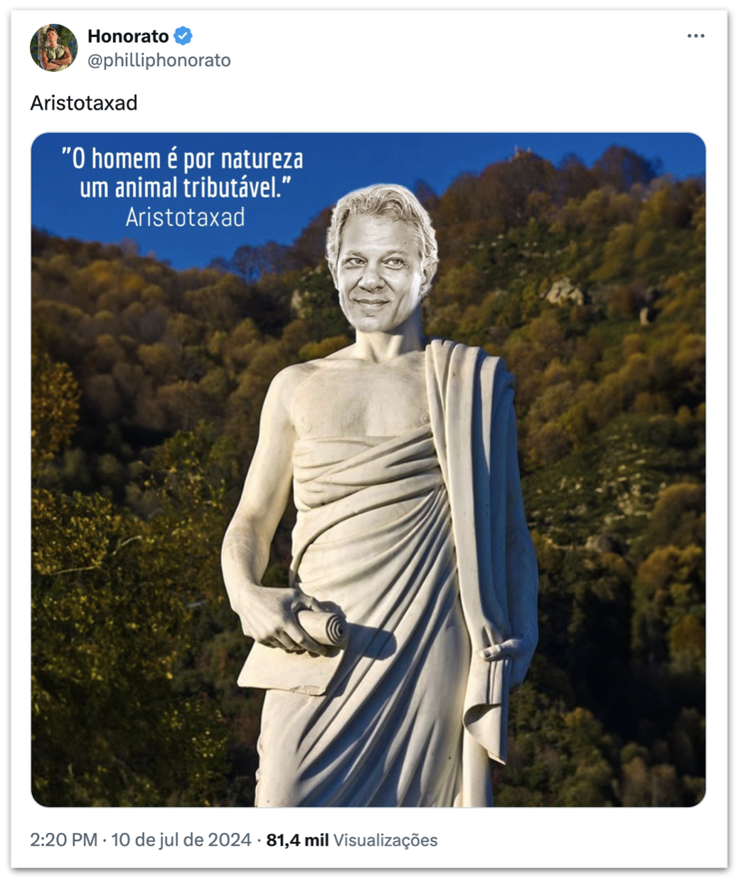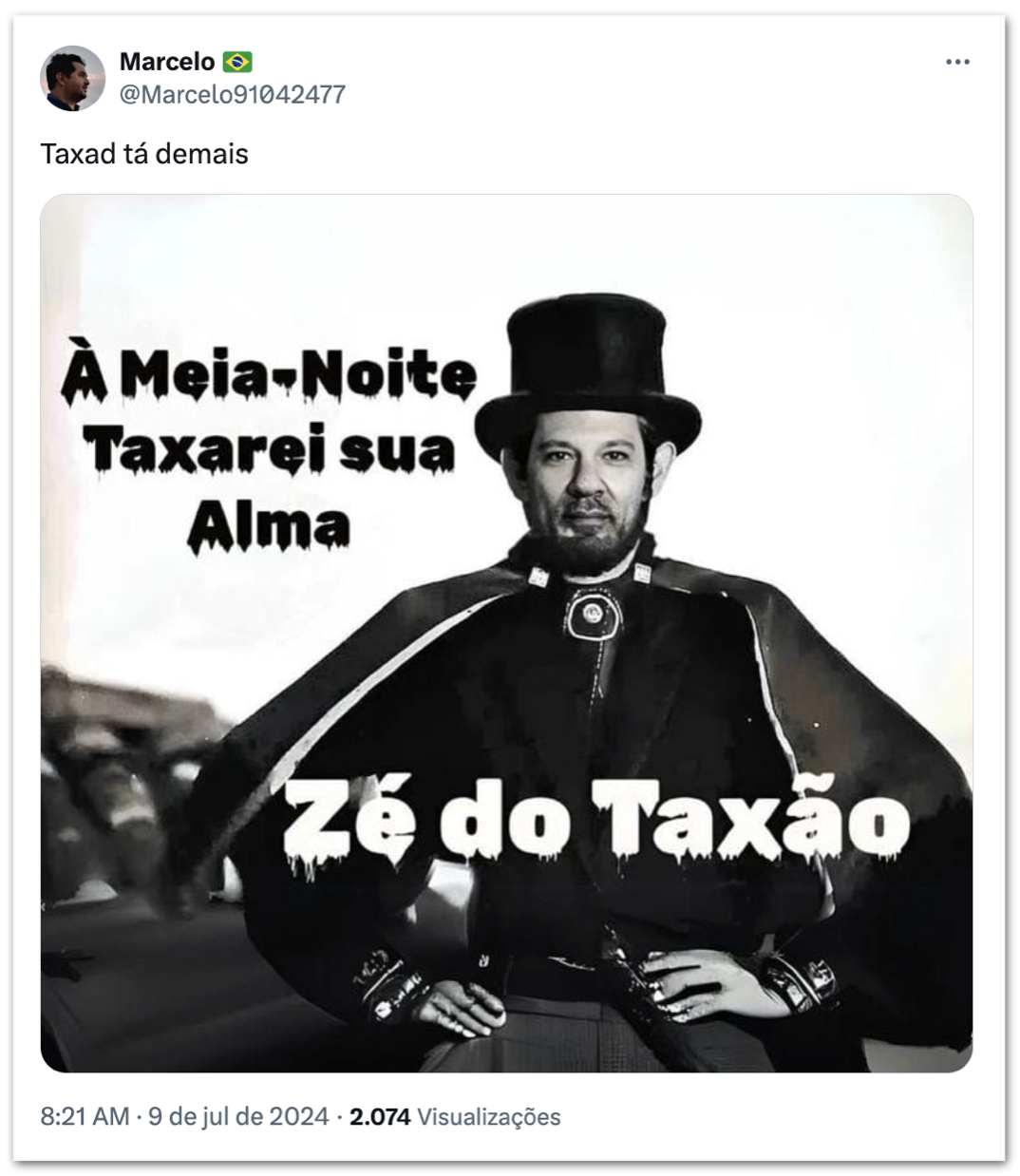 Tudo isso rendeu ao ministro apelidos como Taxad e Zé do Taxão. Os nomes também foram adotados por políticos de oposição. Somado a isso, estão os memes com releituras de filmes, como Rambo e O exterminador do Futuro e de programas de TV.