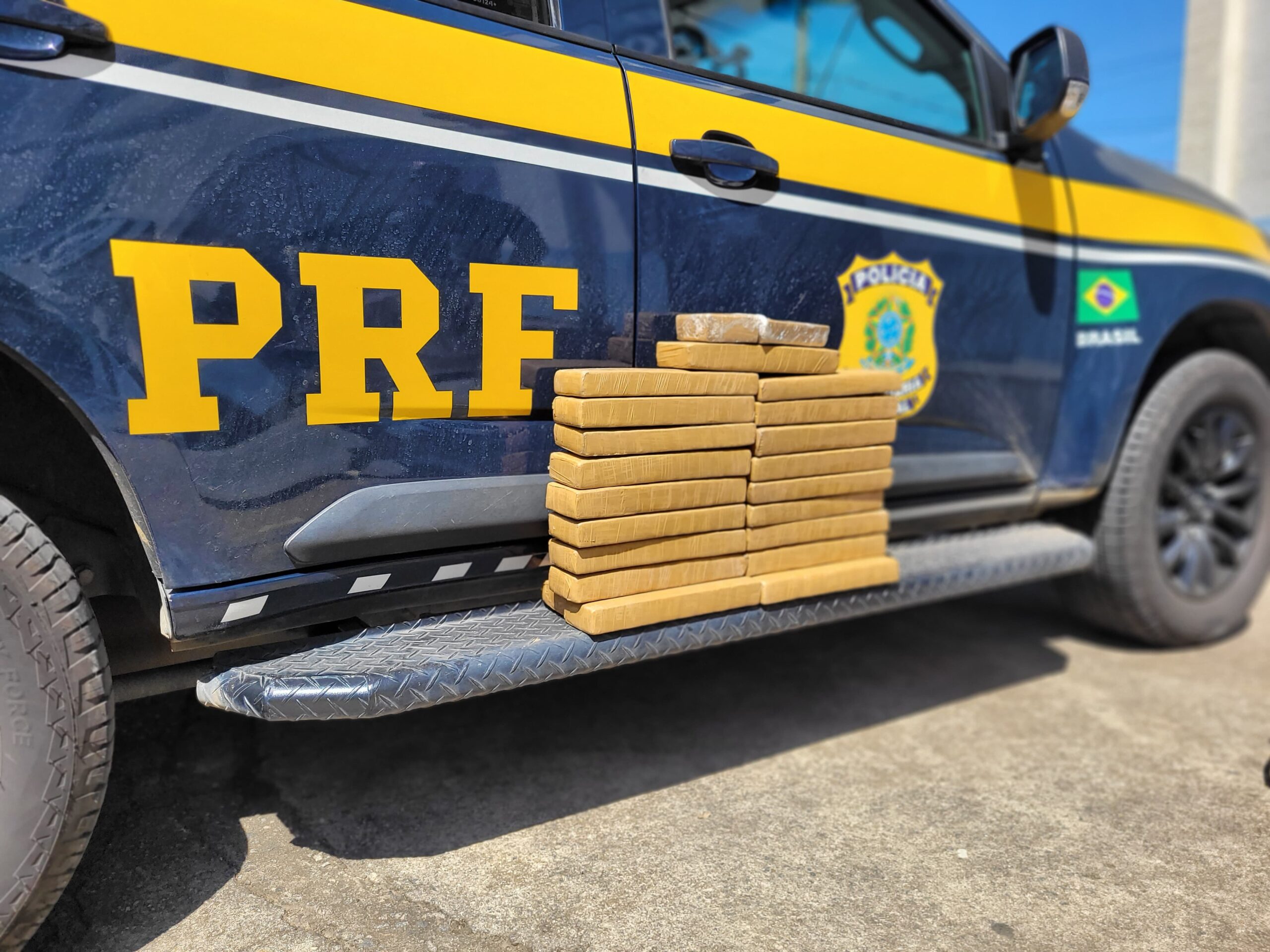 Após a interceptação, durante a inspeção, na manhã desta quarta-feira (19), a Polícia Rodoviária Federal (PRF) apreendeu 22,1 kg em meio às bagagens do comportimento próprio do veículo.