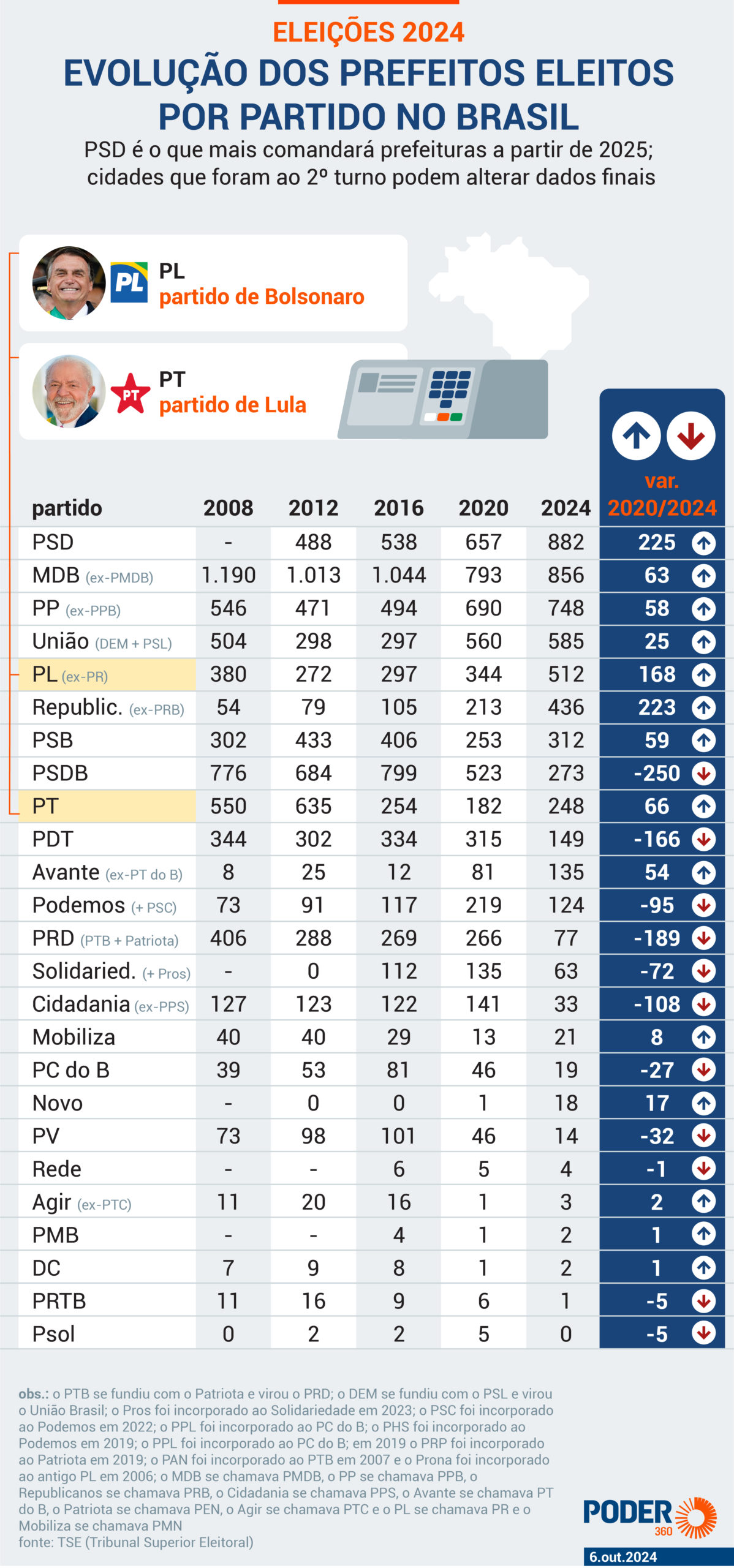 A legenda, porém, sofreu perdas até chegar às eleições de 2024: Cido Sobral deixou o Psol e se filiou ao MDB. Ele foi reeleito. Já João Alfredo migrou ao PT, mas não foi reeleito. Este ano disputou 204 prefeituras, mas poderá só conquistar duas.