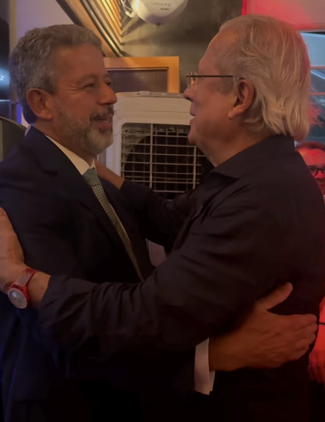O deputado e ex-presidente da Câmara Arthur Lira (PP-AL) e Zé Dirceu se abraçando