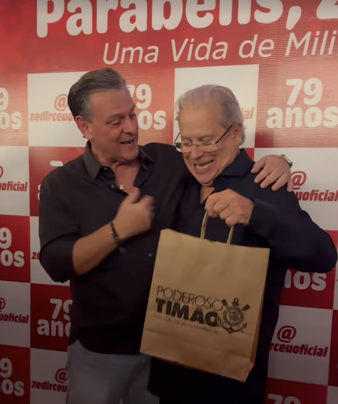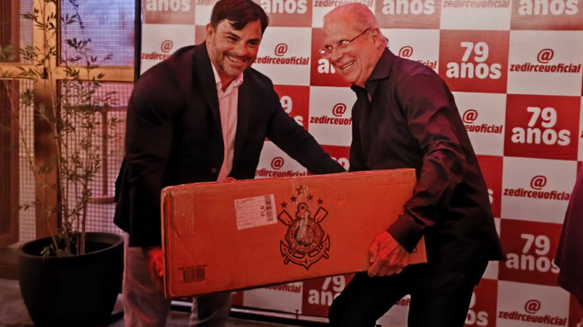 Logo ao chegar, Dirceu recebeu o que pareceu ser um presente (uma caixa com o escudo do Corinthians –ele é torcedor do clube)