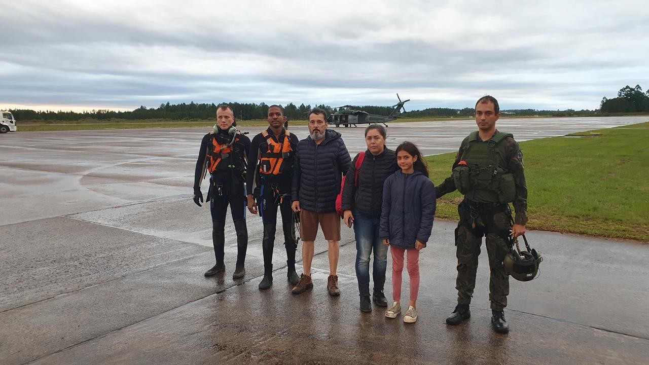 Família de Candelária (RS) resgatada por equipe da Força Aérea após fortes chuvas