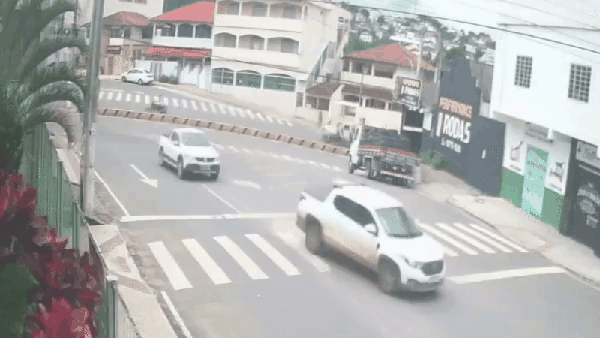 Duas vacas furtadas caíram da carroceria de uma caminhonete em movimento durante a fuga do criminoso na tarde de terça-feira (13), em Nova Venécia, no Noroeste do Espírito Santo. As cenas, registradas por câmeras de segurança, mostram o momento em que o veículo branco passa pela rua Maranhão, no bairro Beira Rio, e os animais despencam na pista.